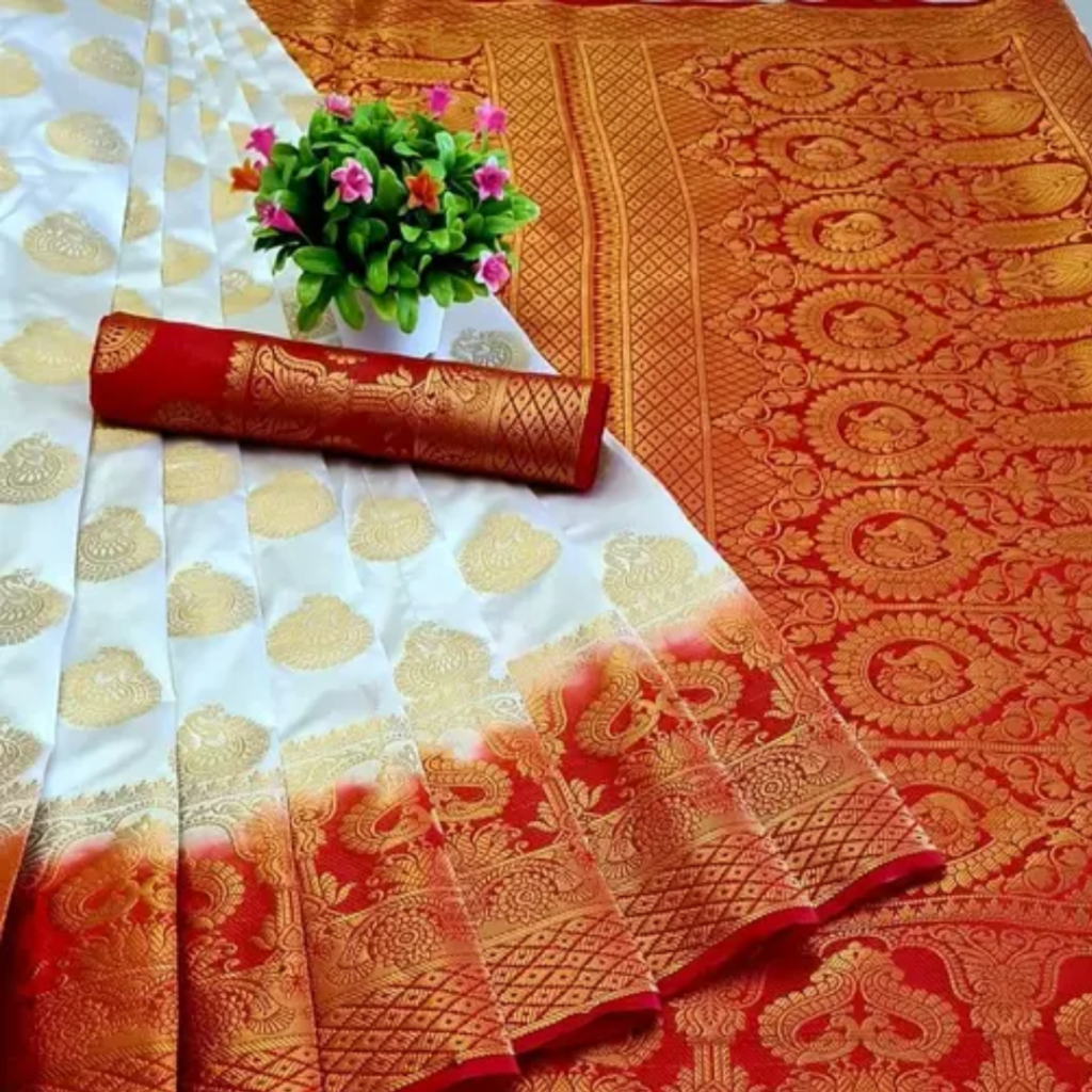 White and red saree